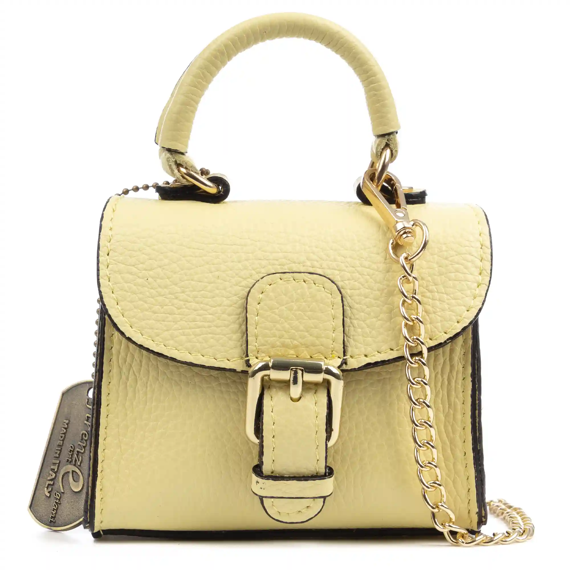 FIRENZE ARTEGIANI Annicco mini bolso de mano y bandolera mujer. Piel auténtica acabado Dollaro. Fabricado en Italia 12x8,5x10,5 Cm. Color: Amarillo Claro