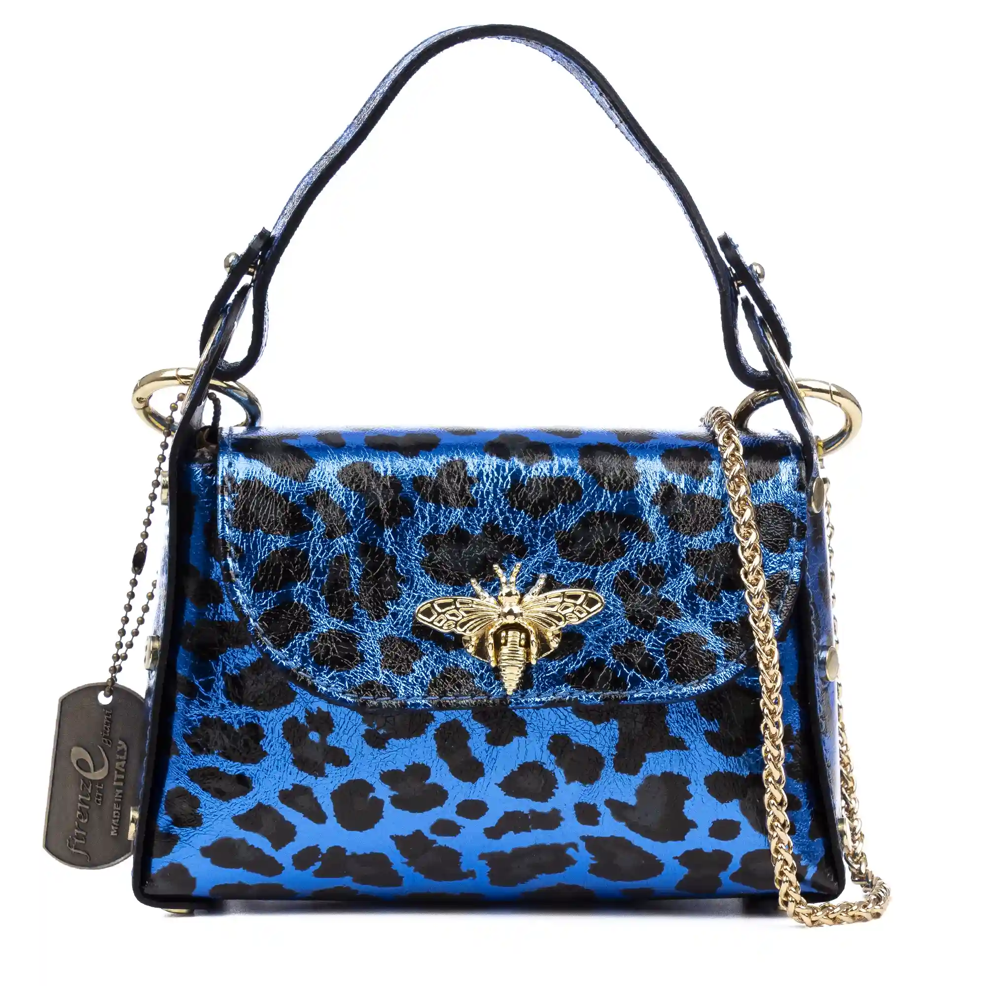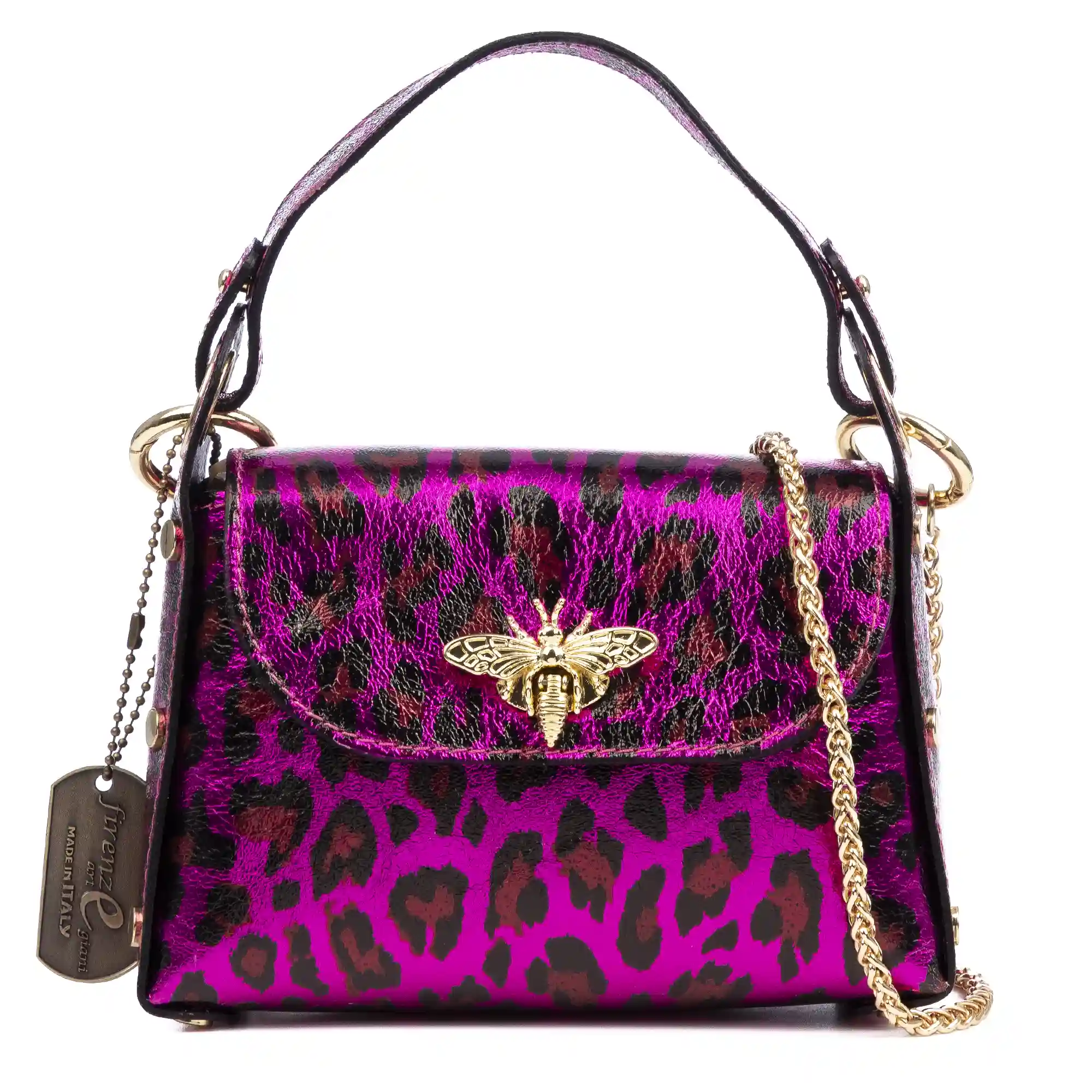 FIRENZE ARTEGIANI Aquileia bolso de mano mujer. Piel auténtica Gamuza con estampado animal print leopardo lacada brillante. Fabricado en Italia 19x7x13 Cm. Color: Leopardo