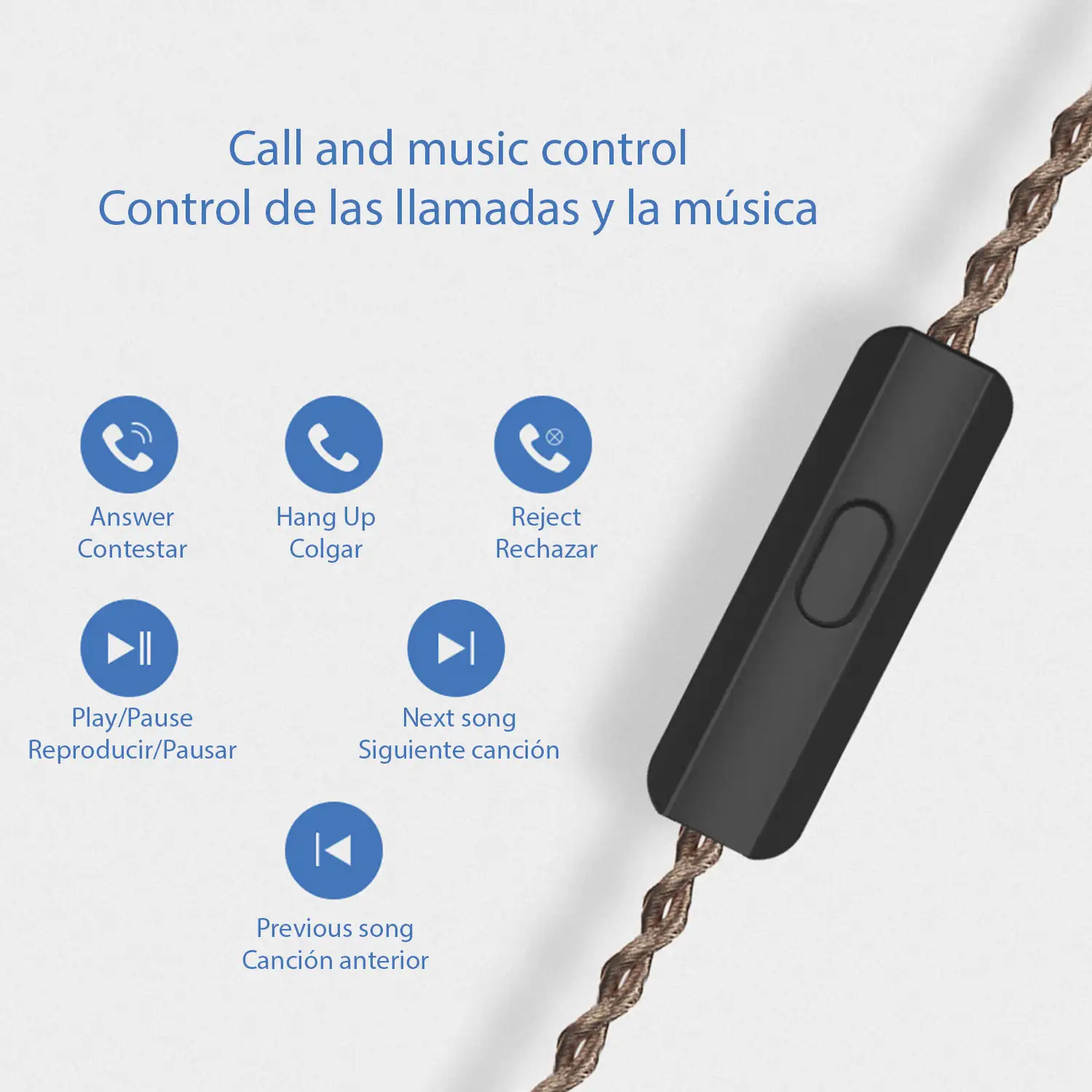 • Cable de alta calidad, con conectores chapados en oro. Diseño trenzado de alta resistencia, con conector de 3.5mm acodado. Forma semicircular para situar por detrás del pabellón auditivo: comodidad como hasta ahora no habías sentido. Además, gracias a su diseño podrás realizar actividad física sin miedo a que se te caigan. Puede ser reemplazado y mejorado; conviértalo en Bluetooth inalámbrico reemplazando el cable por el módulo bluetooth. (Los cables actualizados y módulos bluetooth deben adquirirse por separado).
