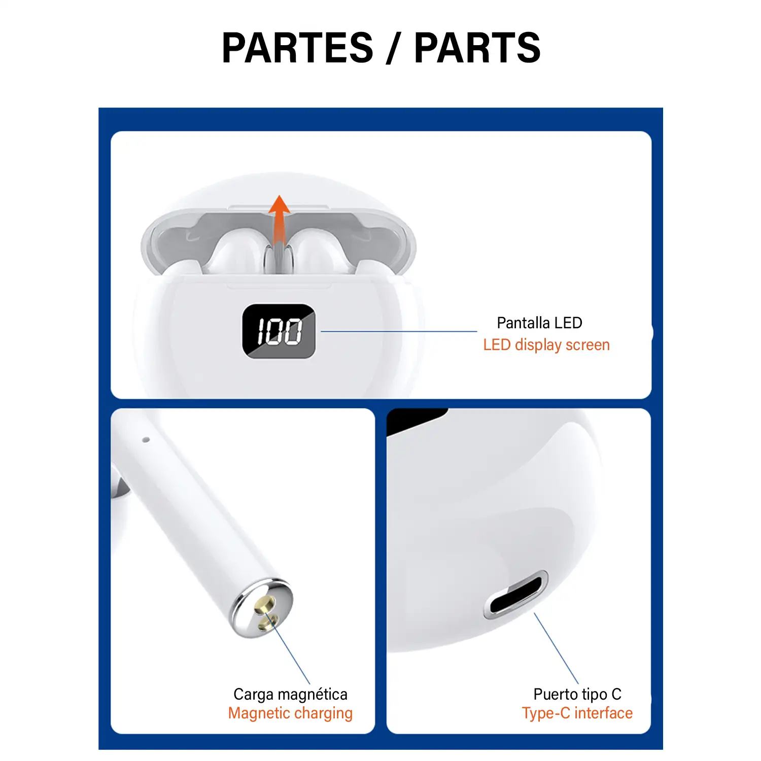 • Modo estéreo TWS, con función manos libres. Acceso a Siri / asistente de voz.