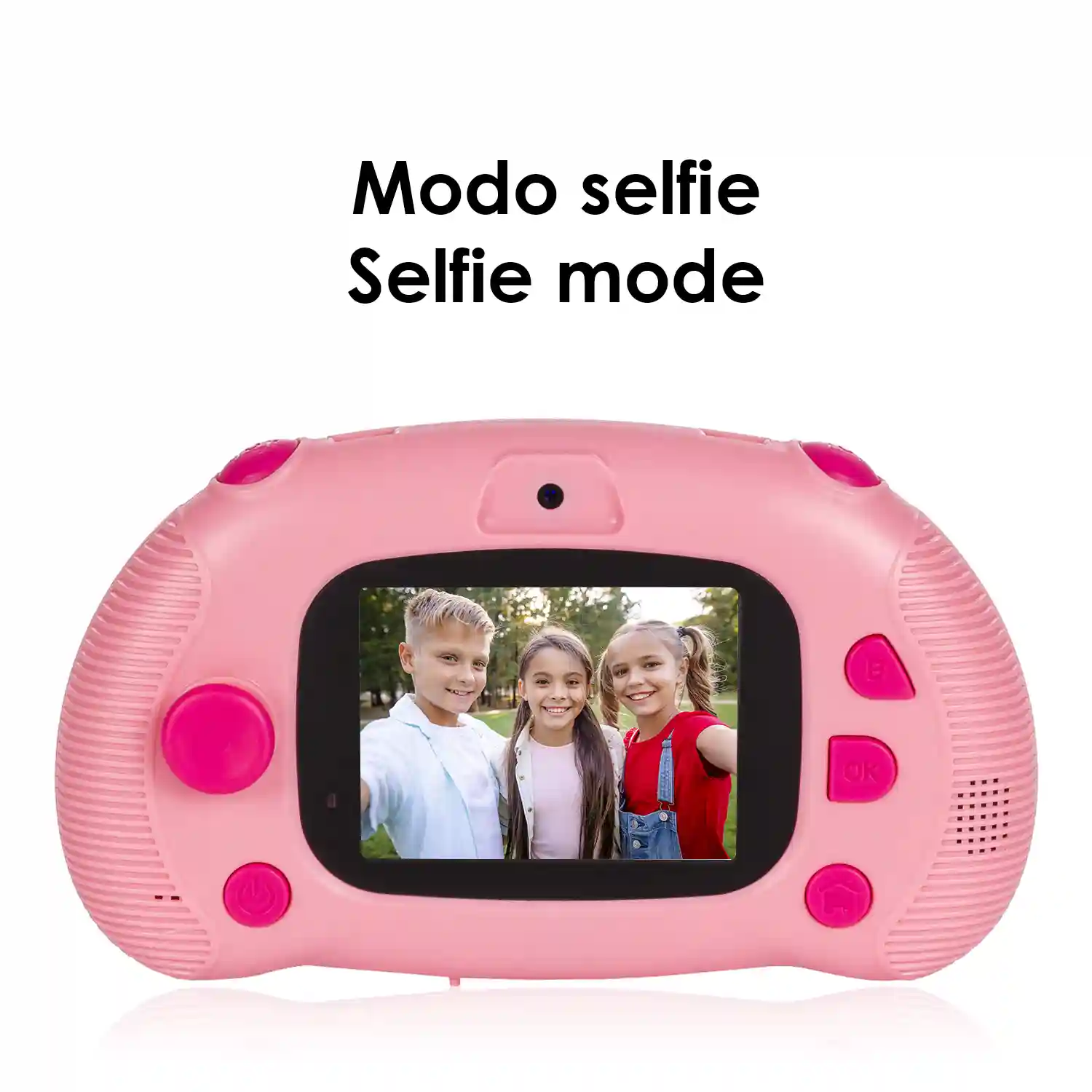 DAM Cámara de fotos y video infantil con 25 juegos incorporados. Cámara dual, 20mpx y video 2,5K. Pantalla de 2,4 pulgadas. 13x3,5x7,5 Cm. Color: Rosa