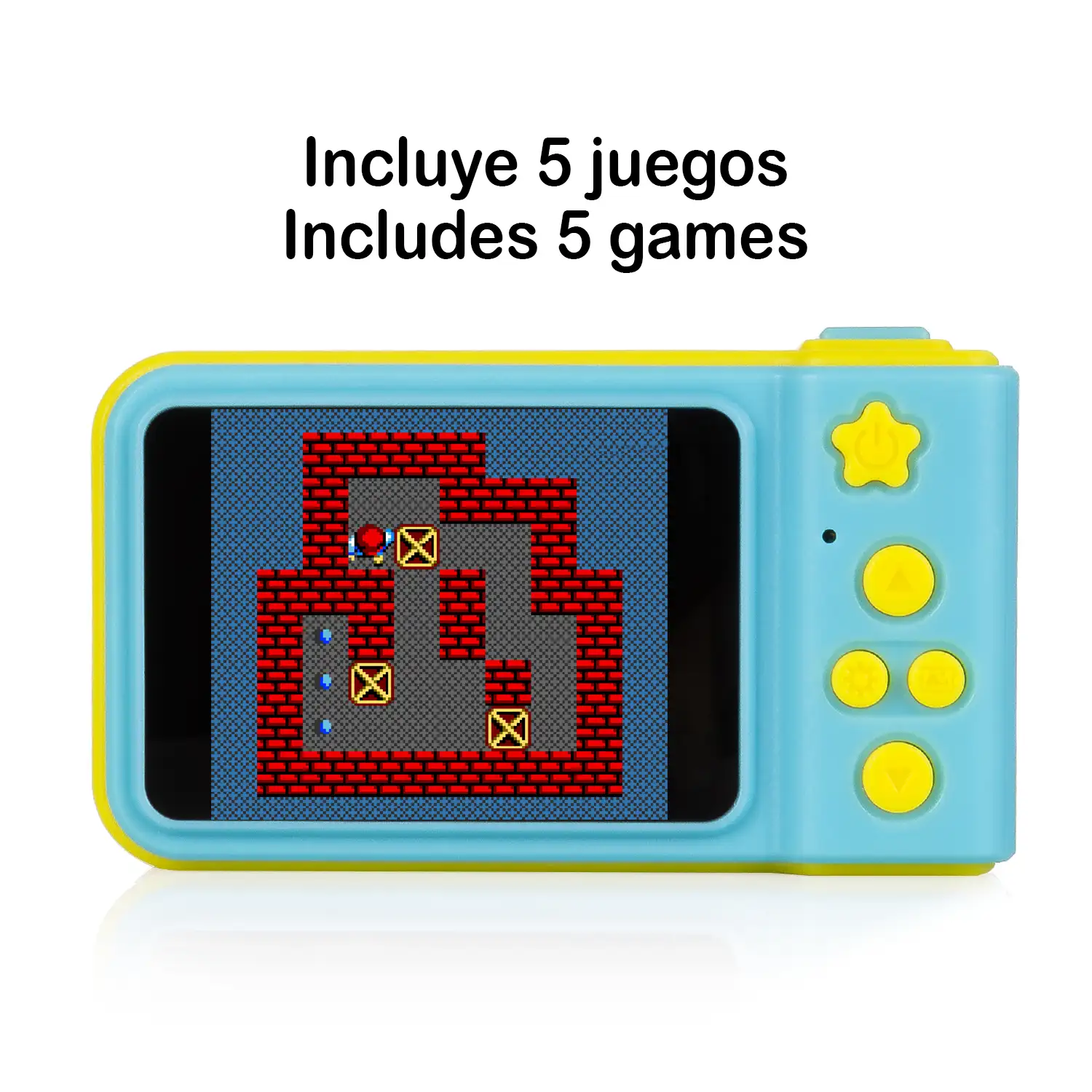 DAM Cámara de fotos y videos para niños con juegos 8x4x4 Cm. Color: Amarillo