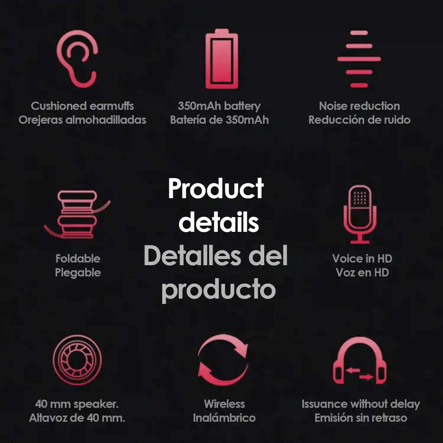 • Almohadillas suaves con diseño ergonómico, con espuma para mejorar la comodidad y el sellado del sonido.