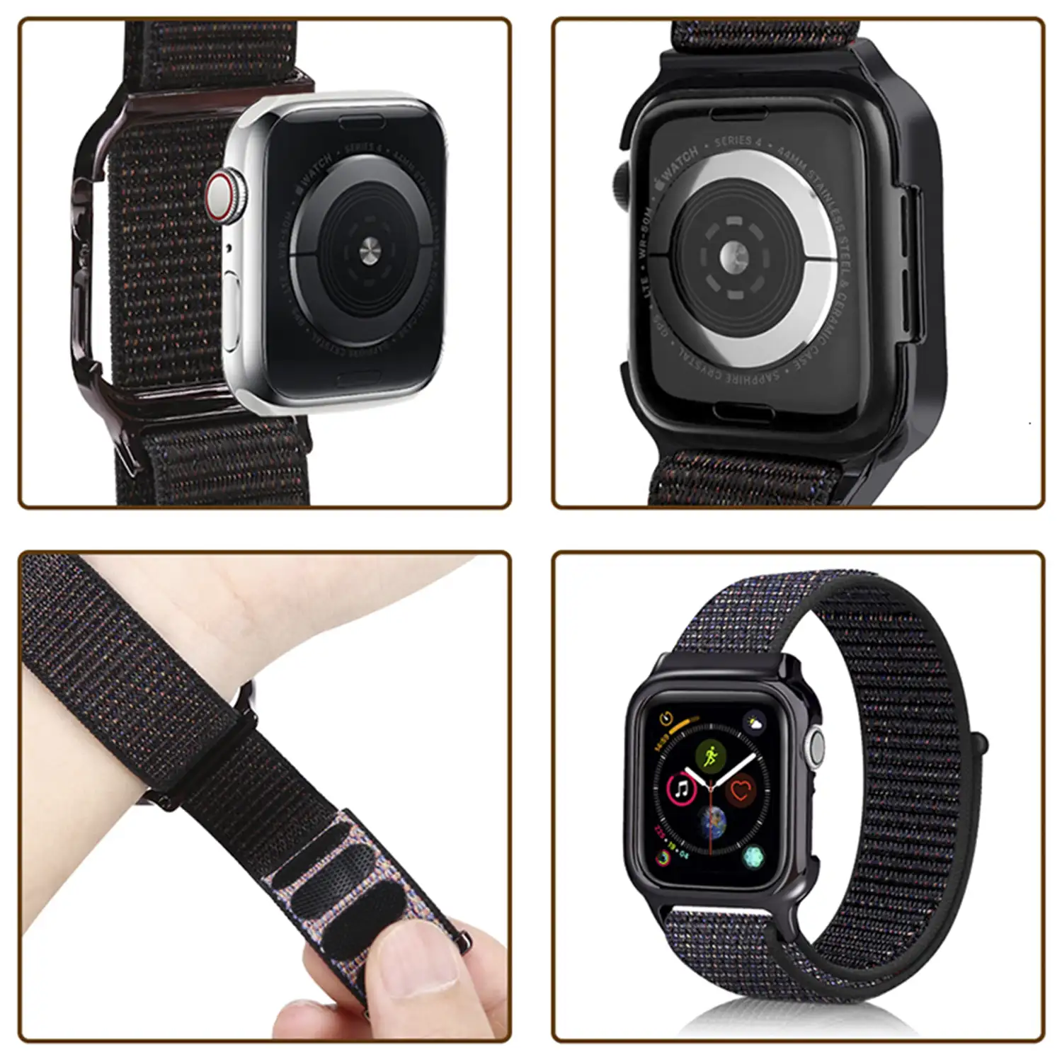 - Correa de nylon con carcasa rígida y cierre de velcro para Apple Watch de 42mm.