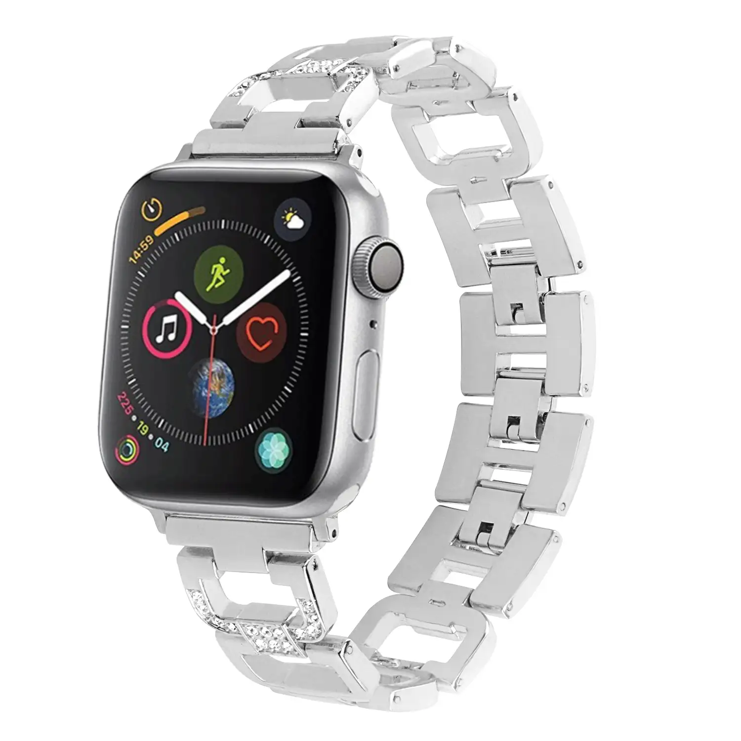 - Correa universal de acero inoxidable trama mosaico rectangular y brillantes con cierre mariposa oculto para Smartwatch y relojes de 22 mms.