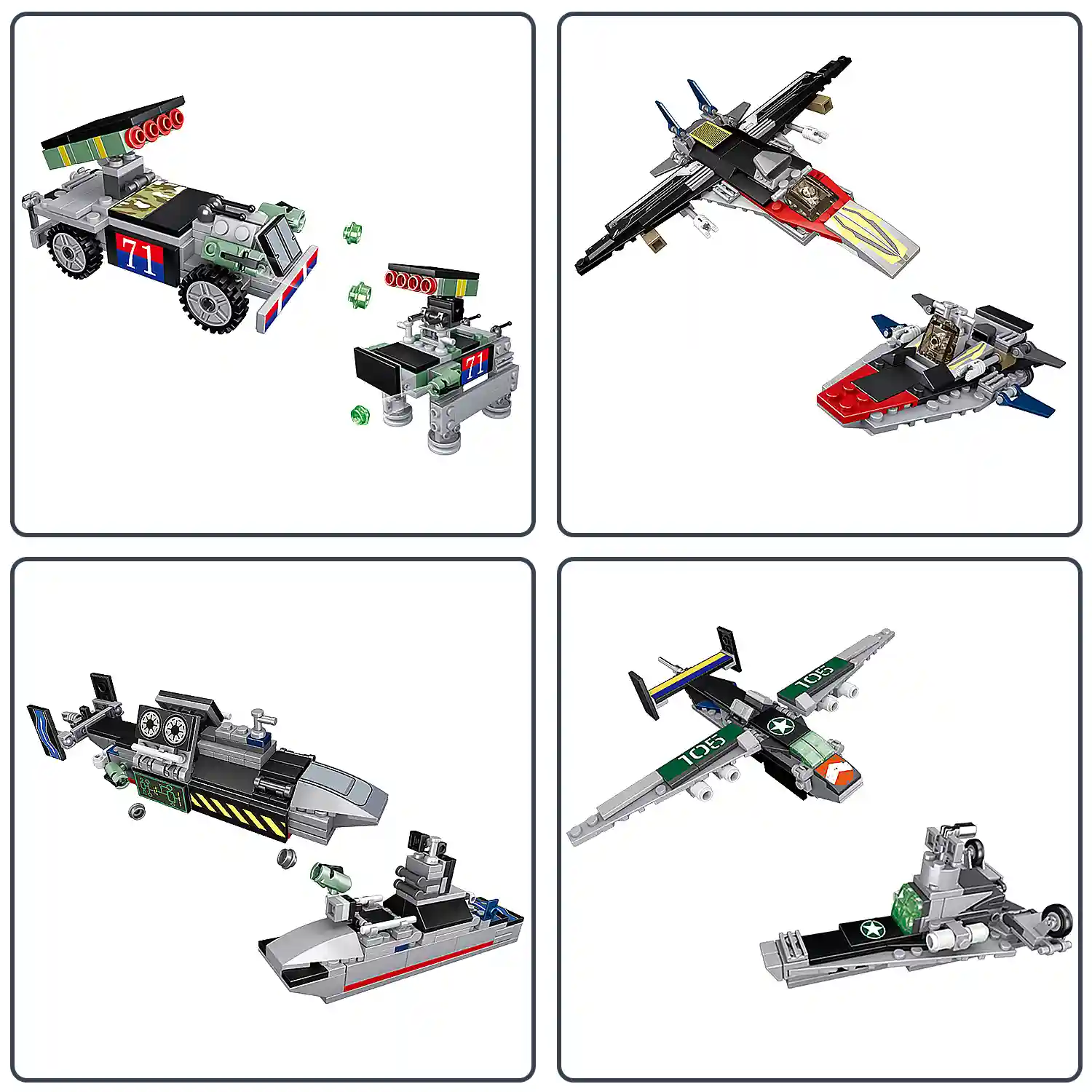 • Con cada modelo podrás construir 2 formas: 8 vehiculos individuales convertibles en dos formas cada uno.