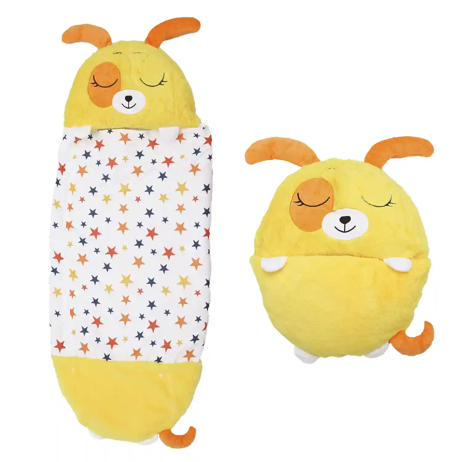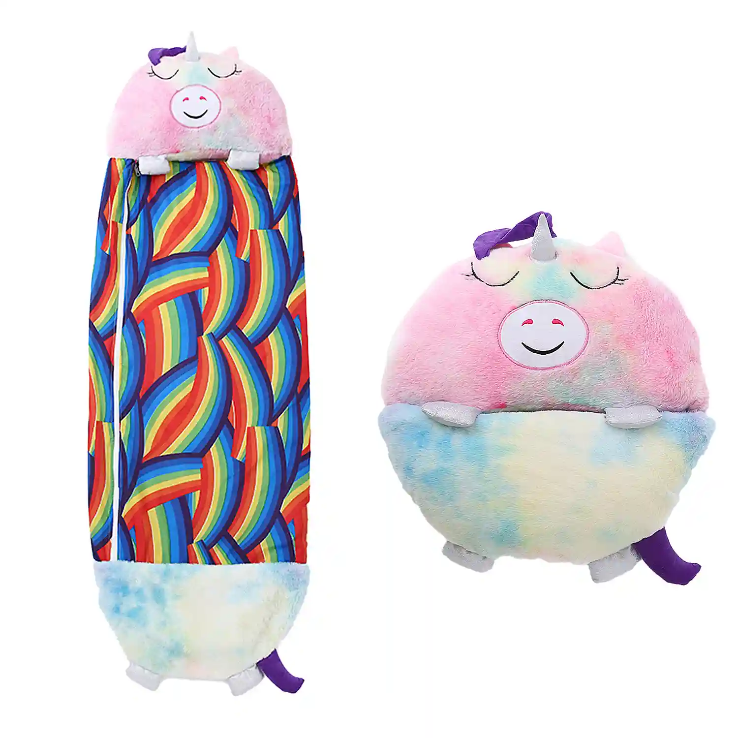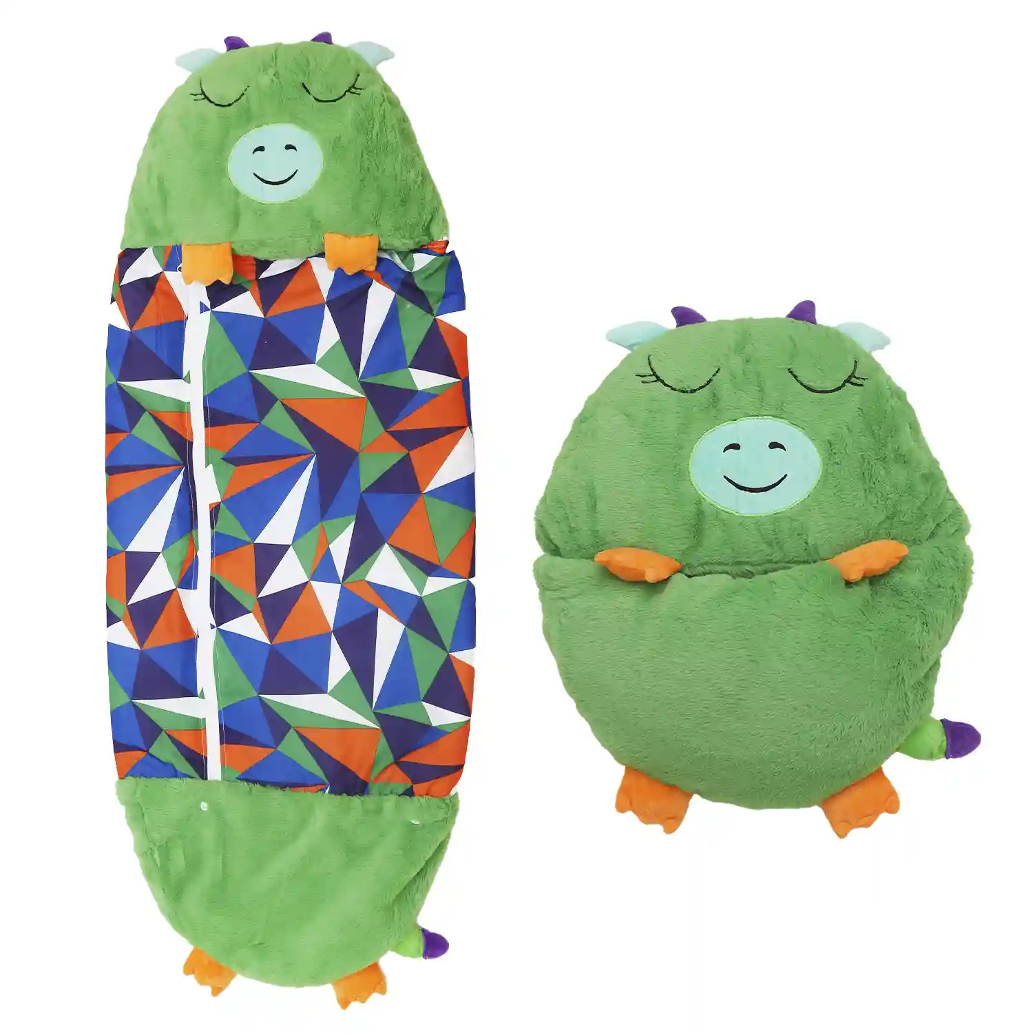 - • Almohada y Saco de Dormir en uno: ¡el perfecto saco de dormir con almohada! Cuando llegue la hora de dormir, sólo tienes que poner los pies en alto y encontrarás un acogedor saco de dormir. Cuando la hora de la siesta ha terminado, el saco de dormir se pliega fácilmente y se fija con dos cierres de prénsatelas. En segundos, el saco de dormir se transforma de una divertida almohada de juego a un divertido saco de dormir portátil con almohada incorporada.