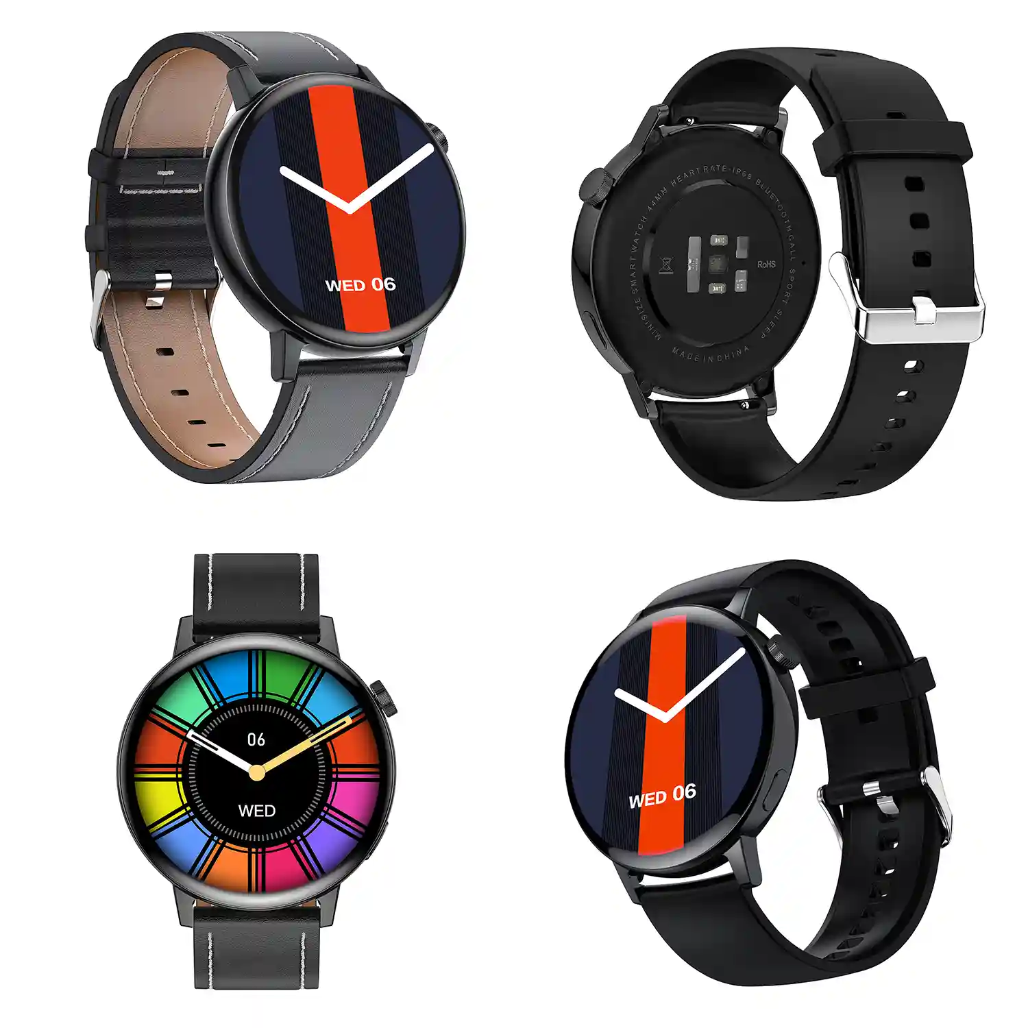 DAM Smartwatch A03 con monitor cardiaco, O2 en sangre, juegos y modo multideportivo. Correa de cuero + correa de silicona. 4,3x0,9x4,3 Cm. Color: Negro
